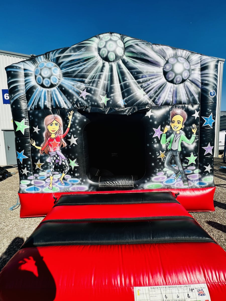 Try this amazing disco dome for the great addition to any disco party! This is the newest addition to our Disco Castles. It has a bouncy floor and a roof so can be used rain or shine. Let's get the party started! Disco upgrade required for the lights and speaker, this can be found on our extras page. Extras